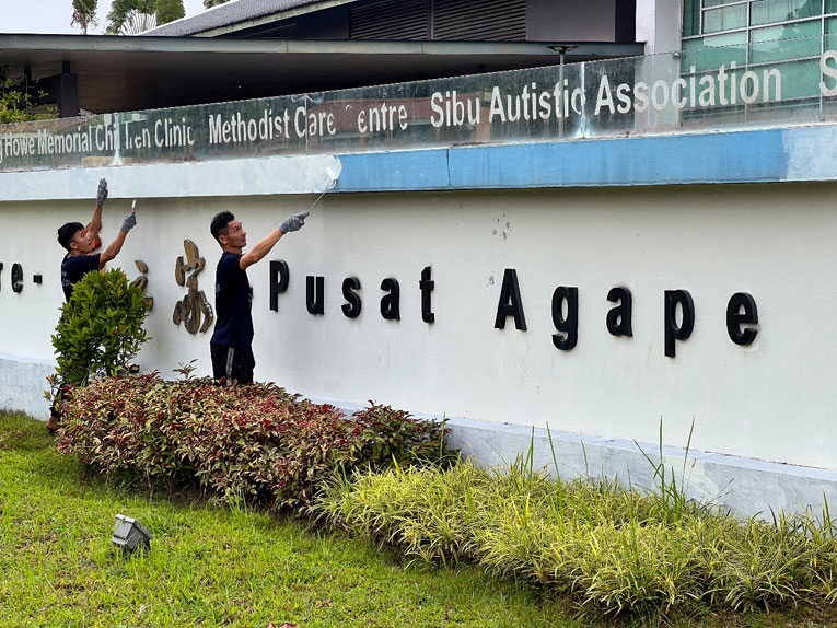 This heartwarming initiative was made even more impactful by the participation of volunteers from various organizations. Notably, 4 volunteers from the Sibu Autistic Association, 4 from the Methodist Care Centre, 4 from the Association of Children with Special Needs, 13 from Special Olympics, and 2 from the Agape Clinic joined hands with the Pansar Company team. Together, this diverse group of volunteers worked tirelessly, investing their time and energy to ensure the comprehensive cleaning and painting process was successfully completed within three days.